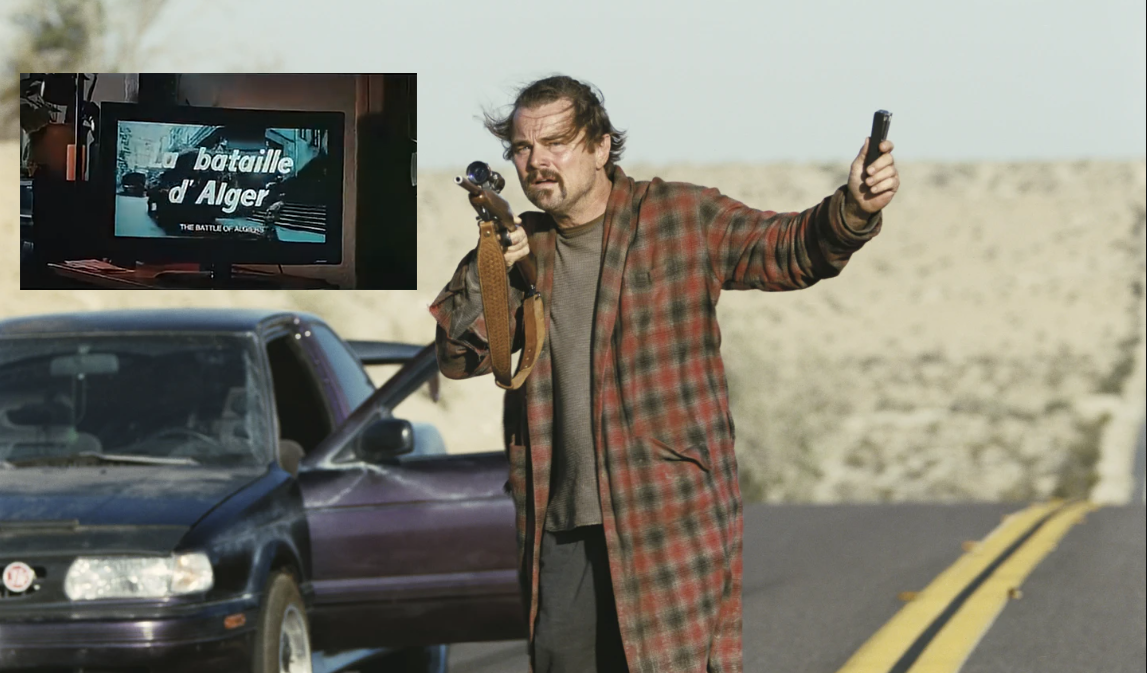 وفي مشهد لافت، يظهر ليوناردو دي كابريو وهو يشاهد على شاشة التلفاز فيلم المقاومة الجزائرية، قبل أن تتقاطع الصورة مع اقتحام الجيش الأميركي منزله داخل السرد الجديد، في مقارنة بصرية تربط بذكاء بين آلة القمع الاستعمارية الفرنسية في الماضي وآليات العنف المعاصر. هذا التوظيف يجعل من فيلم بونتيكورفو مرآة قاسية تكشف التشابهات بين أنظمة تبرر العنف باسم الحرية أو النظام.