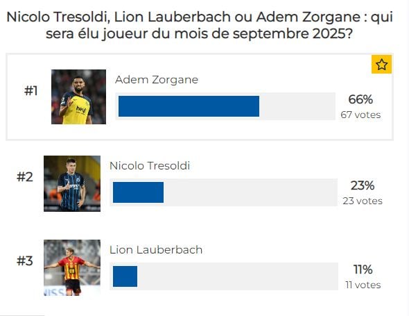 ويتقدم زرقان، بعد انطلاق التصويت الخاص بجائزة أفضل لاعب في سبتمبر الماضي. على منافسيه بفارق مريح، بعدما جمع 66% من الأصوات مقابل 23% لتريزولدي. و11% للألماني لوبيرباش.